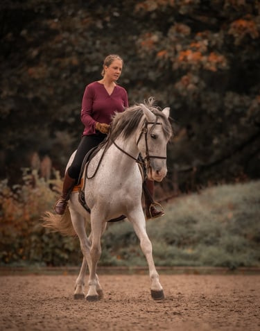 I am committed to treating horses as equals. To achieve this, it is particularly important to me that you understand how you can achieve more harmony with your horse. My goal is that you learn through my lessons how to train your horse in a healthy way without me.
