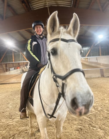 Ich habe bisher wenig Erfahrung mit Lehrgängen gehabt. Außerdem gab es ein Ereignis, das mich in meinem Reiten stark zurückgeworfen hat. Jemand sagte mir, dass ich an meinem Sitz arbeiten muss und so bin ich beim Lehrgang bei Agnes gelandet. Es war die beste Entscheidung! Agnes hat mir gezeigt, wie ich mit meinem Sitz und ein paar kleinen neuen Ideen Avanti gut tue und ihm helfen kann sich über den Rücken zu bewegen... also gesunderhaltend. Ich habe von dem Lehrgang so viel mitgenommen und freue mich auf das nächste Mal!